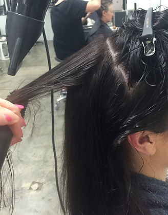 Take your time to section the hair and hold the bulk of the hair up with the clip or hair band. You’ll need someone else to do the back section of your hair, the best scenario is using a trained professional, but if you’re stuck somewhere and you need a blow-dry in a hurry get your buddy to section your hair. Kylie says “Always start from the bottom section. You can do more sections further up, make sure each section is precise (a precise line), it ensures a smooth blow-dry”. It depends on the texture of your hair but provided all the tips have come into play your blow-dry is heading in a great direction.